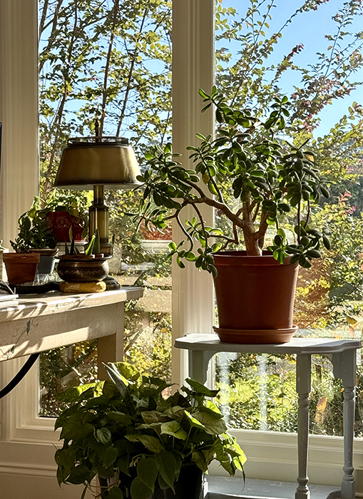 A friend's mommy is moving to a smaller place and she needed to find a home for her jade! I'm in love! Isn't it amazing? That's in my office windows where it will get bright morning light.
