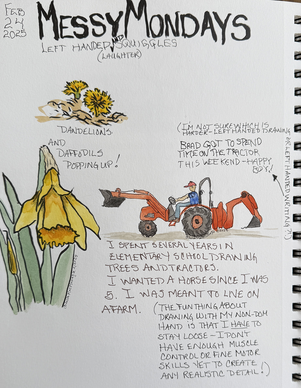 My right wrist is still bugging me but I've been to my physical therapist and she thinks with her stretches, exercises, and ice, I'll be better soon. Still fun to play with drawing and writing with my left hand: