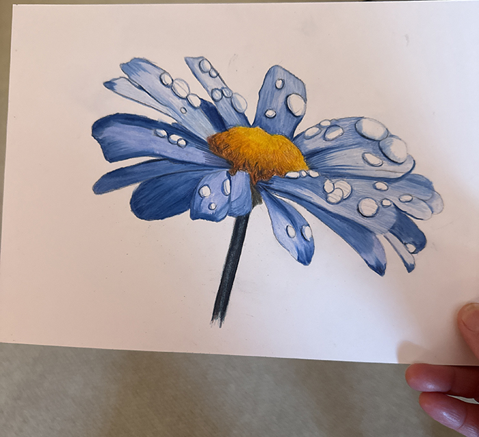 Artists like to take freebie classes too :-) A colored pencil artist I follow was teaching this little flower and I've never done water droplets so I thought I'd join. I haven't worked in colored pencil for years now but always enjoyed it for the nearly 10 years that I did it exclusively, might have to do more in it: