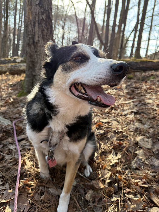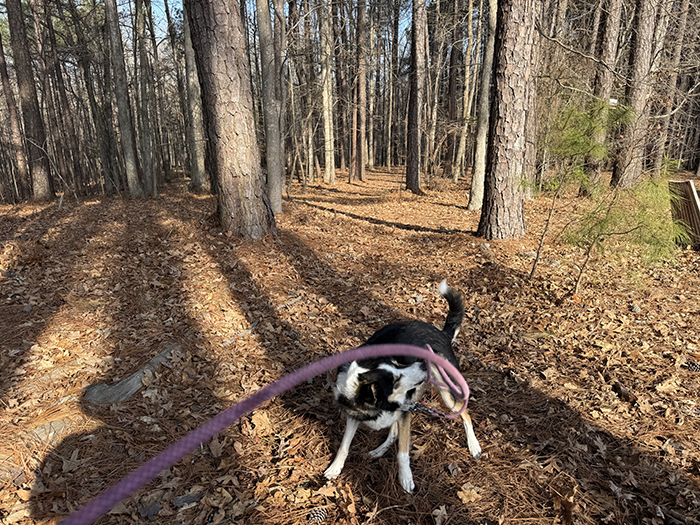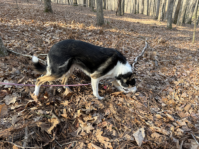 Off to the forest we go! She smells everything that interests her: