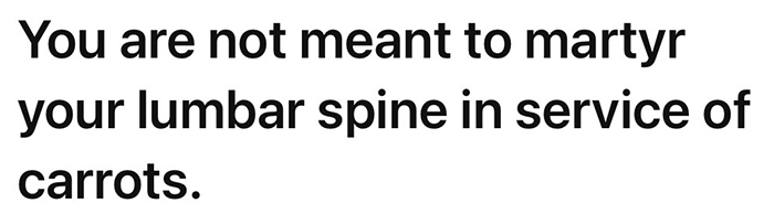 I was discussing my ridiculously short garden hoe with Claude AI, trying to find out what the style I was thinking of was called. We went back and forth a few times with me saying the the short hoe was not meant for someone 5'7", my back was killing me, and it gave me some options. Then it said, OMG!: