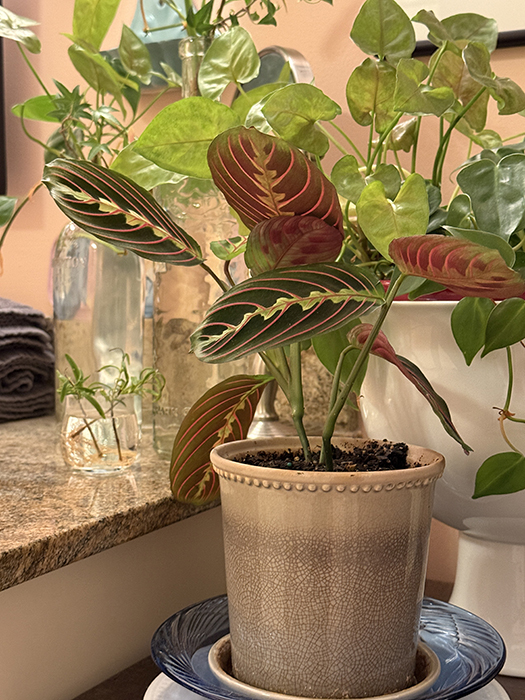Have you ever seen a prayer plant? They are new to me. I was told that their leaves folded up as if in prayer. I was imagining a sensitive plant but never saw it do anything like that. All I saw was this plant that appeared to be slowly dying :-(