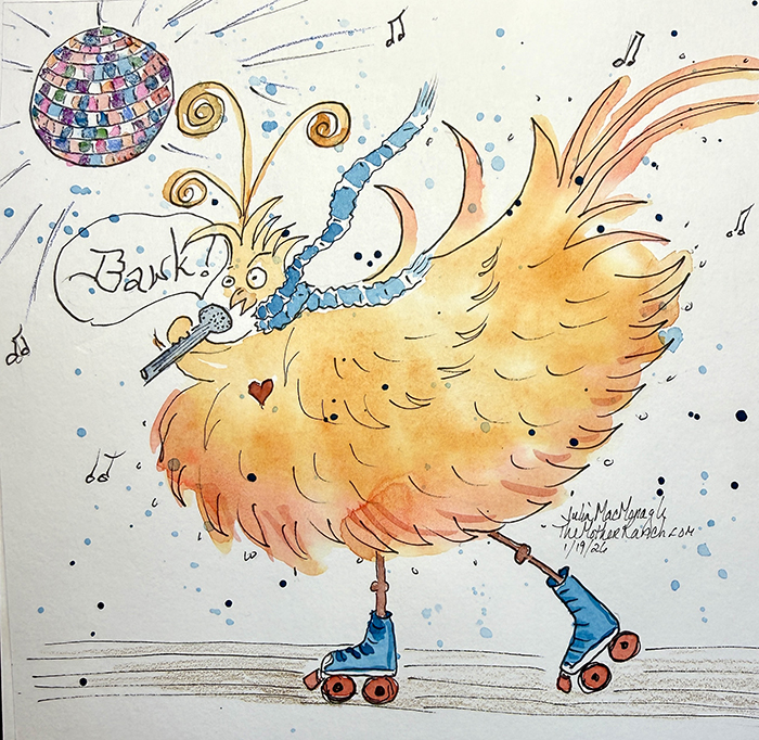 Earlier this week I was reading Jill Badonsky over on Substack, she makes the most playful art, a ton of ridiculous chickens and of course writes. I love her. She had said: Pick one worry and draw it as a creature with ridiculous hair. Ask it, “Okay, what do you actually need?” and write its answer without judgment. Here is what came to me, introducing Bawky Chicken: