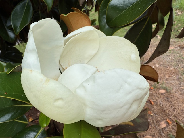 The neighborhood magnolias are in full swing! They are 40+ years old and the flowers are nearly as big as dinner plates when fully opened:
