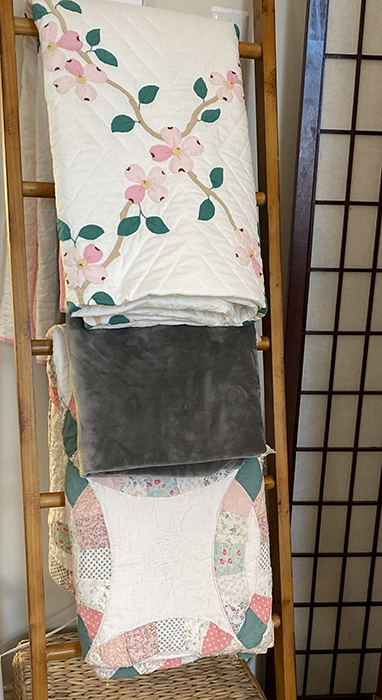 I found my favorite quilt that was packed away in 2020 in preparation for putting the ranch on the market so we could move here. My Grandma gave it to me when I was in elementary school. Pink dogwood blossoms, so beautiful: