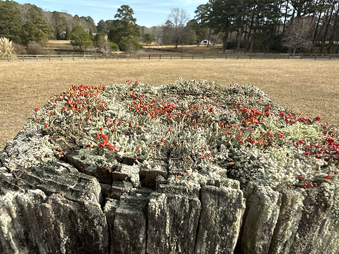 It's that time of year where the British Soldiers Lichen, Cladonia cristatella are fruiting again. They love old decaying wood. Apparently it's two organisms living together, a fungus and algae and they are a sign of clean air! Looks like a tiny fairy city...