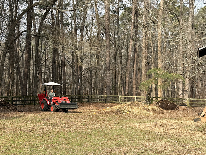 Time to consolidate the manure piles and move the "cooked" pile to another spot so we can use it. Look how dark that dirt is, so rich!