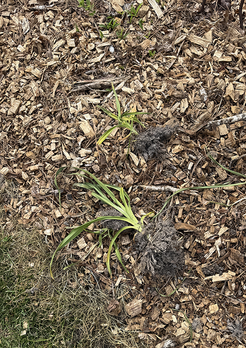 I have been finding naturalized daylilies all over the property this spring and have started digging them up to move them into my sunny garden beds. I planted a section of them and two days later came out to find a few had been pulled up...weird. Then I thought of Lucy barking her head off early that morning and that deer like young daylily shoots. She must have seen this happening and was yelling about it! All the naturalized daylilies's roots are sunk deep and strong in the ground, but my dug up ones are loose in the soil for now. Deer, like goats, only have bottom teeth in the front so it's harder to bite greenery. Imagine the deer's surprise to find the whole clump came out!