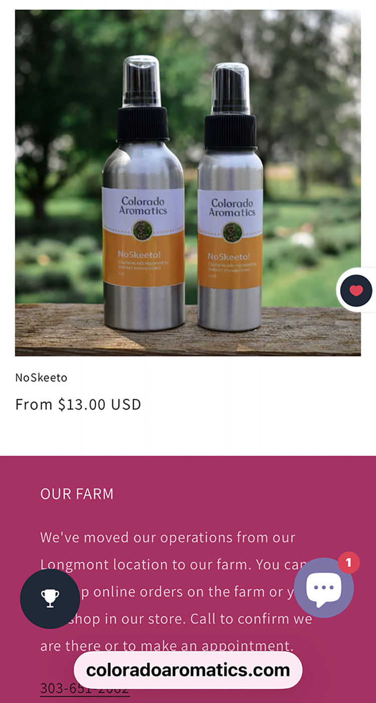 This is the natural mosquito spray I use, it's made by my neighbors across the street from my old Longmont, Colorado ranch! Smells good, won't kill you, keeps mosquitos away!