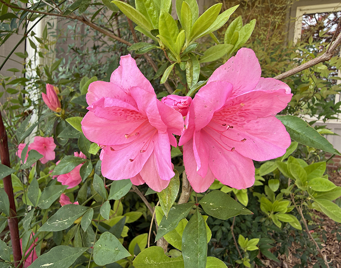 The azaleas are starting!!! Mom's favorite color: