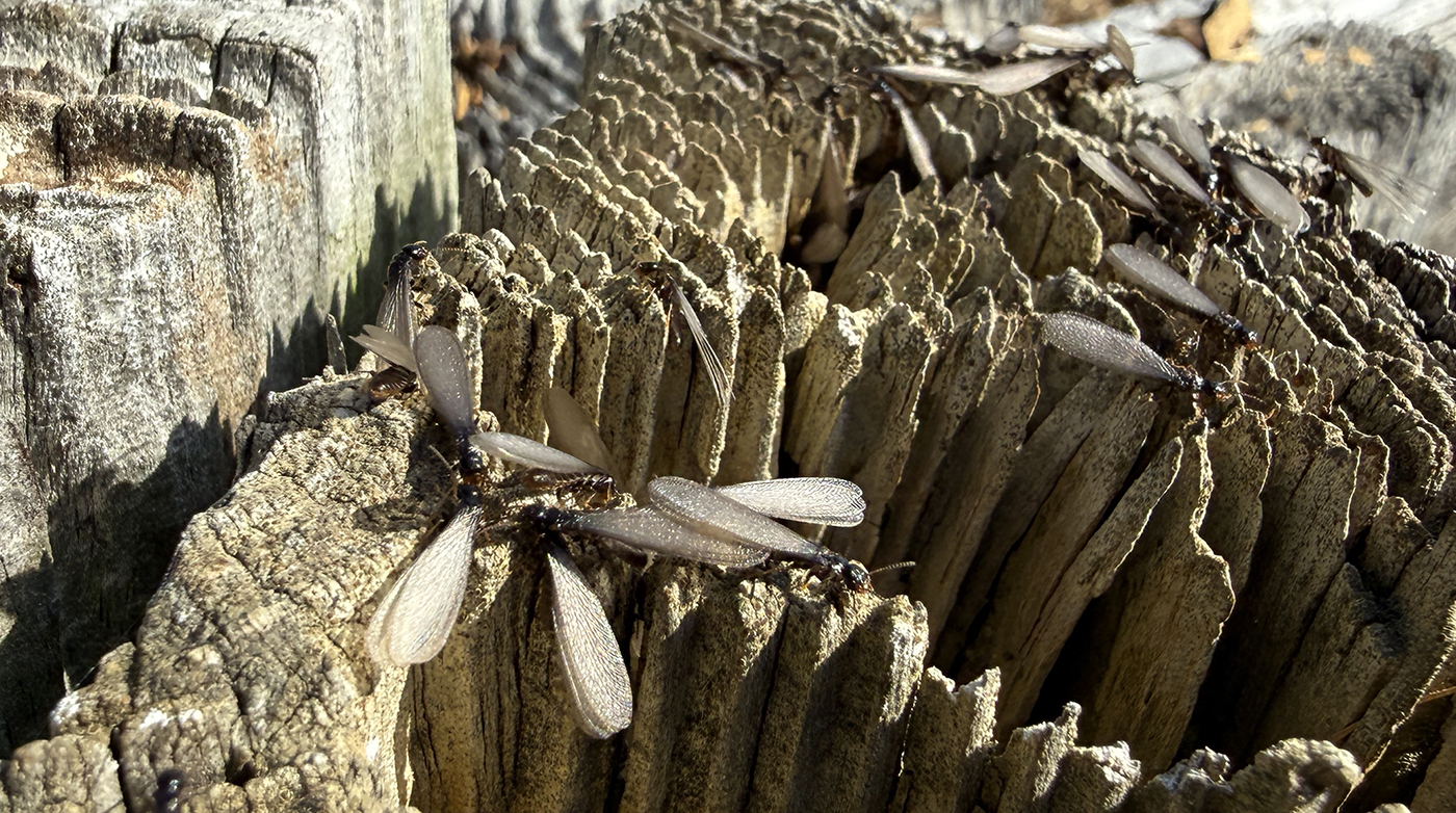 I don't think I've ever seen termites, you? Well here you go! They were swarming off of an old fence post, far away from the house. On a section of fence we were going to take down anyway. Here's how to tell the difference between flying ants and termites: