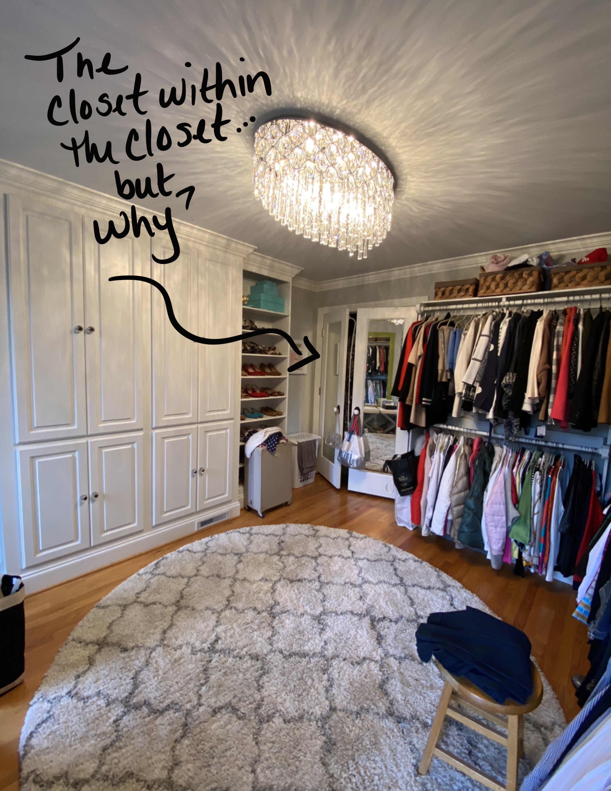 After we moved in we found out that our huge closet used to be an actual room. Maybe a study or a nursery. Finally the closet within the closet made sense!