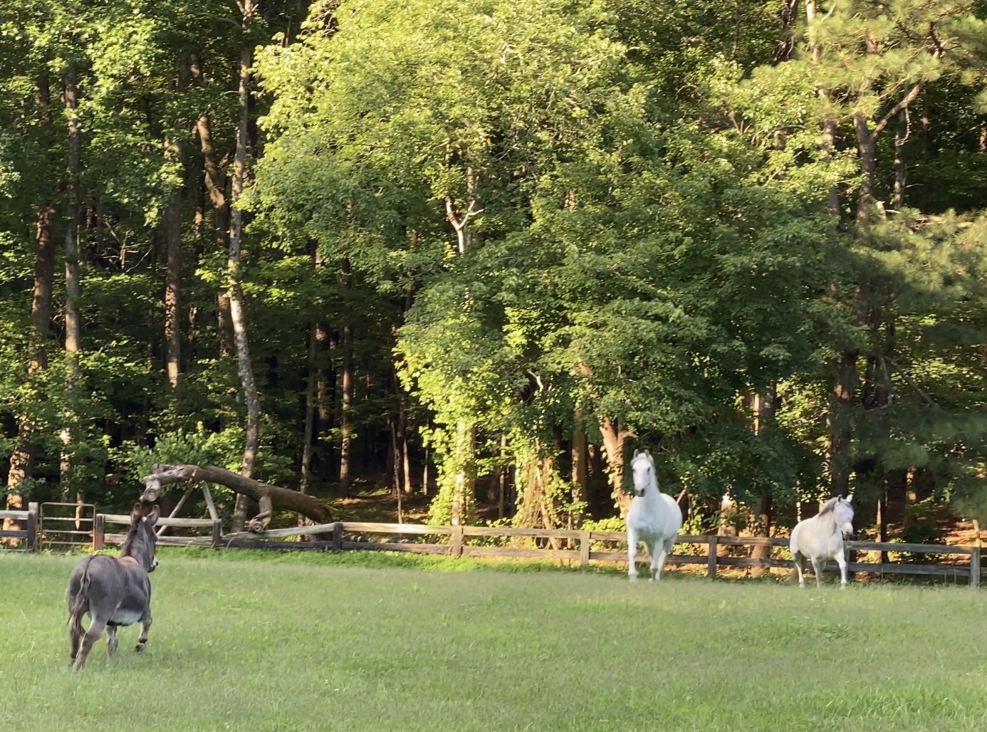 lf you've been with me awhile, you might remember these photos of when Wynter, Rayn, and mini donkey Sweetness were reunited after their trip across the country from Colorado to NC. Sweetness was in a separate, higher compartment in the semi and they couldn't see each other: