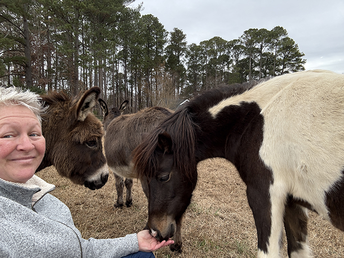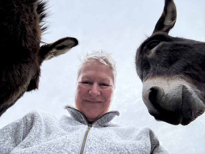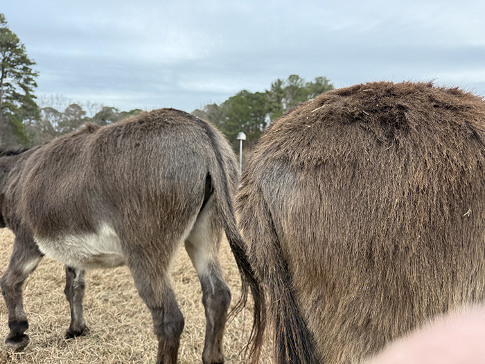 This week I'm jumping straight into the farm photos so I can get back to updating my website. It has taken up every spare moment of my week other than clients, farm chores, and this one hour on Thursday where I grabbed an old moving blanket to put on the ground and went out to the upper pasture to sit with the herd. Tori was the first to come visit and sniff me all over with the donkeys hot on her heels: