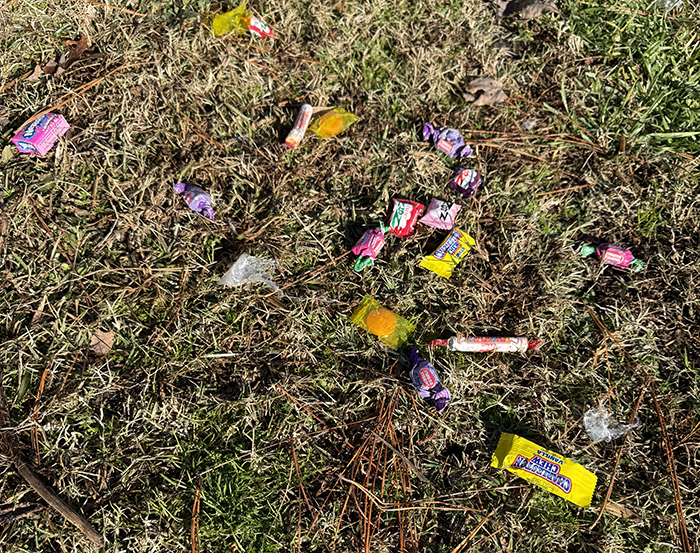 Maybe she crashed after her sugar high? Haaa! Couldn't figure out why there was a ripped open bag of candy over by the lower pasture and finally realized that it was probably her—I bet she found it at the barn next door! No idea if she ate any of it, hope not but who knows.