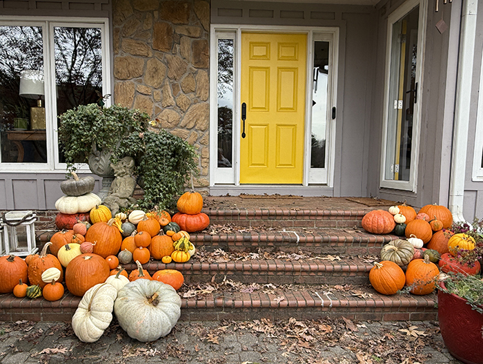For a couple years now, I've asked the local Nextdoor folks to drop their pumpkins off and boy do they! I forgot to mention that goats don't eat "decorative gourds" so I have a bunch of those too but I'll just put those in the compost when they start to look iffy. But the rest of them, so pretty on my front steps and the goats are very happy! Thank you everyone!